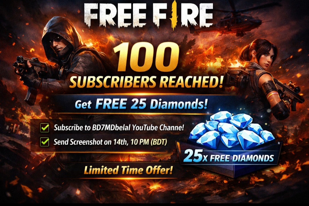 🔥 মাত্র ১ ঘন্টার মধ্যে আপনি পেতে পারেন ২৫ ডায়মন্ড একদম ফ্রিতে! 💎